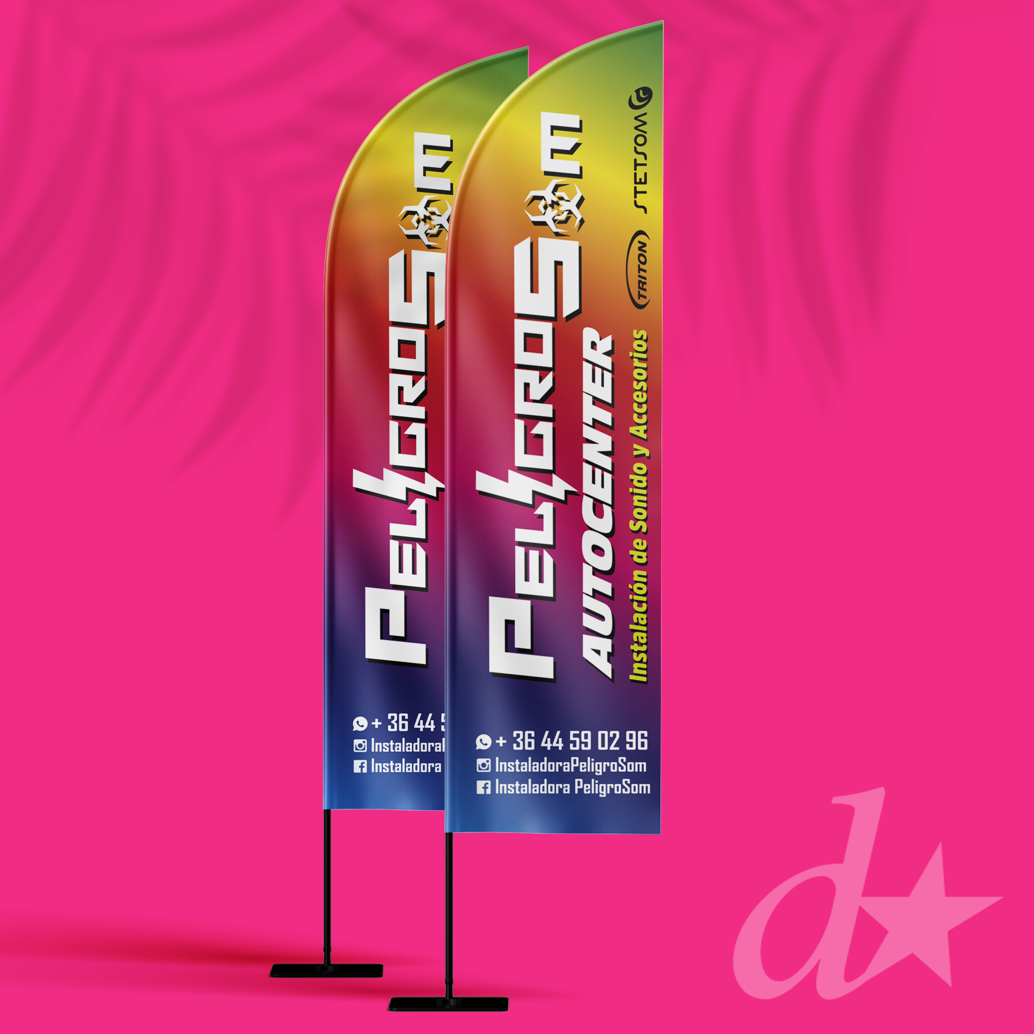 Trabajos de: Banderas, Flybanners, Roll up, Lonas, Cuellitos, Bolsas, Llaveros de cinta, Remeras, Gorras, etc. Estampas en: Sublimación/ Serigrafia/ DTF/ Vinilo.